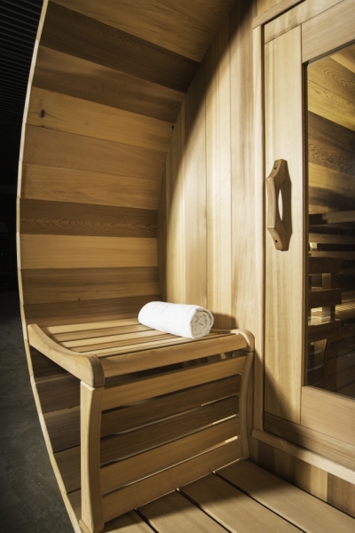 This unit comes with the choice of a 6 kW electric sauna heater or Harvia Wood Burning sauna heater. Clear cedar benches on the inside can be used for a lying down or sitting up position.