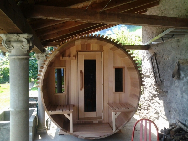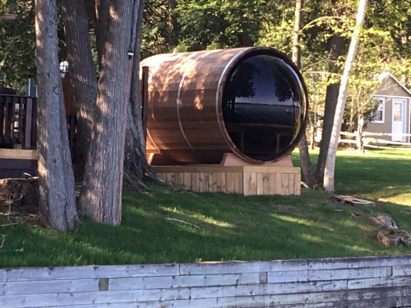 We are very exited to introduce all NEW Premium Panoramic View Clear Western Red Cedar Barrel Sauna. This sauna comes with an acrylic bubble back wall that allows you to see the beautiful view of you lake or landscape from inside the sauna. This unique sauna feels spacious and the views just add to the relaxing feeling when in the sauna.